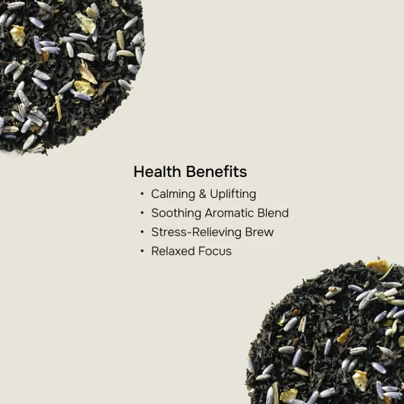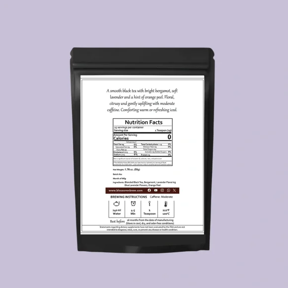 Ingredients: Ceylon Black Tea, Bergamot Flavoring, Lavender Flowers, Orange Peel
